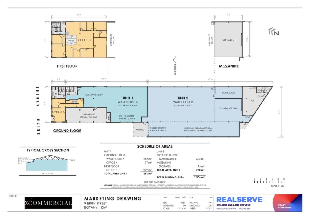 Total Building Area Unit 1: 750m² Ground Floor Warehouse: 635m² Mezzanine First Floor Storage 115m²