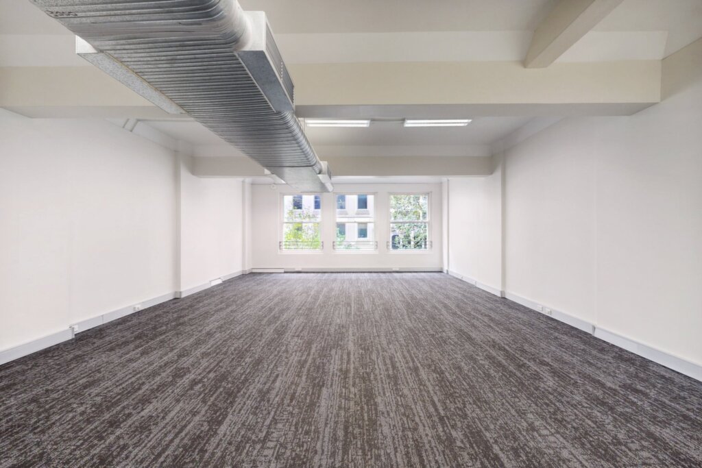 Boardroom, open-plan workspace, kitchenette and bathrooms